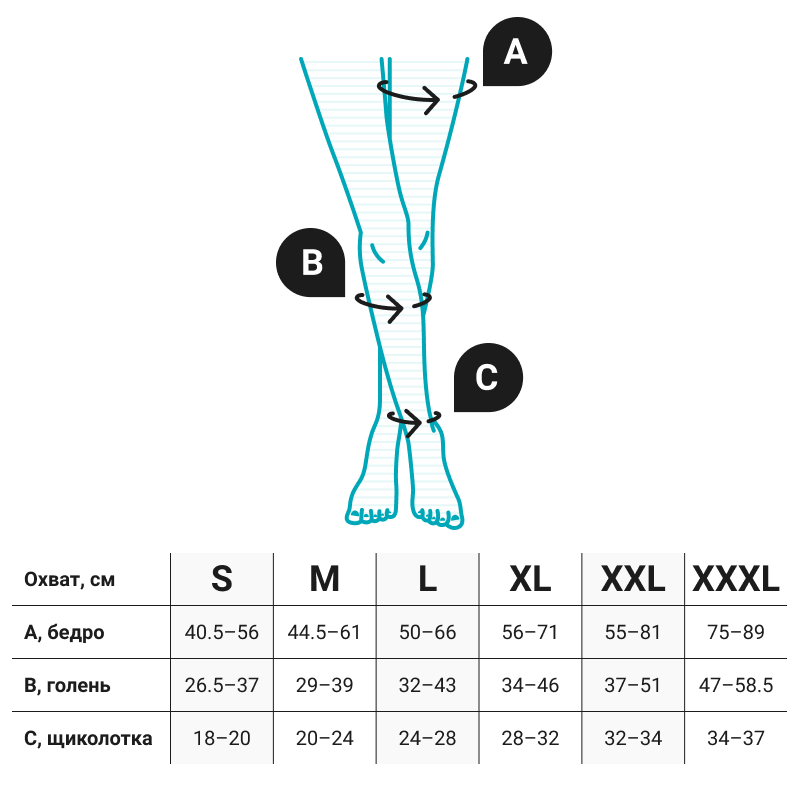 таблица размеров VENOTEKS CLASSIC